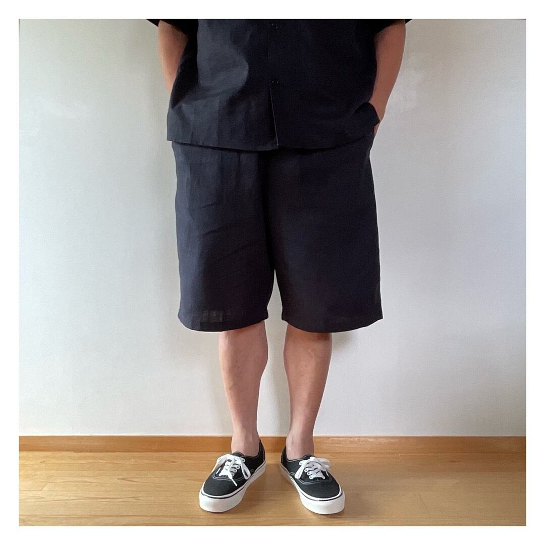 ウエストはドローコード入りのイージーショーツ。様々なシーンで使用されるワークウェアや制服のデザインを元に 現代的なシルエットやパターンにアレンジされています。