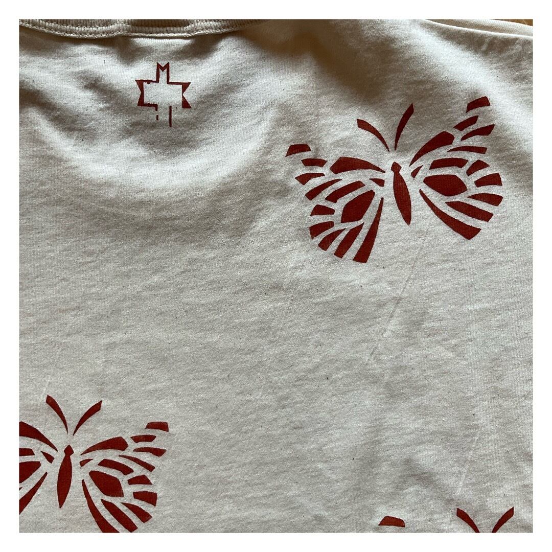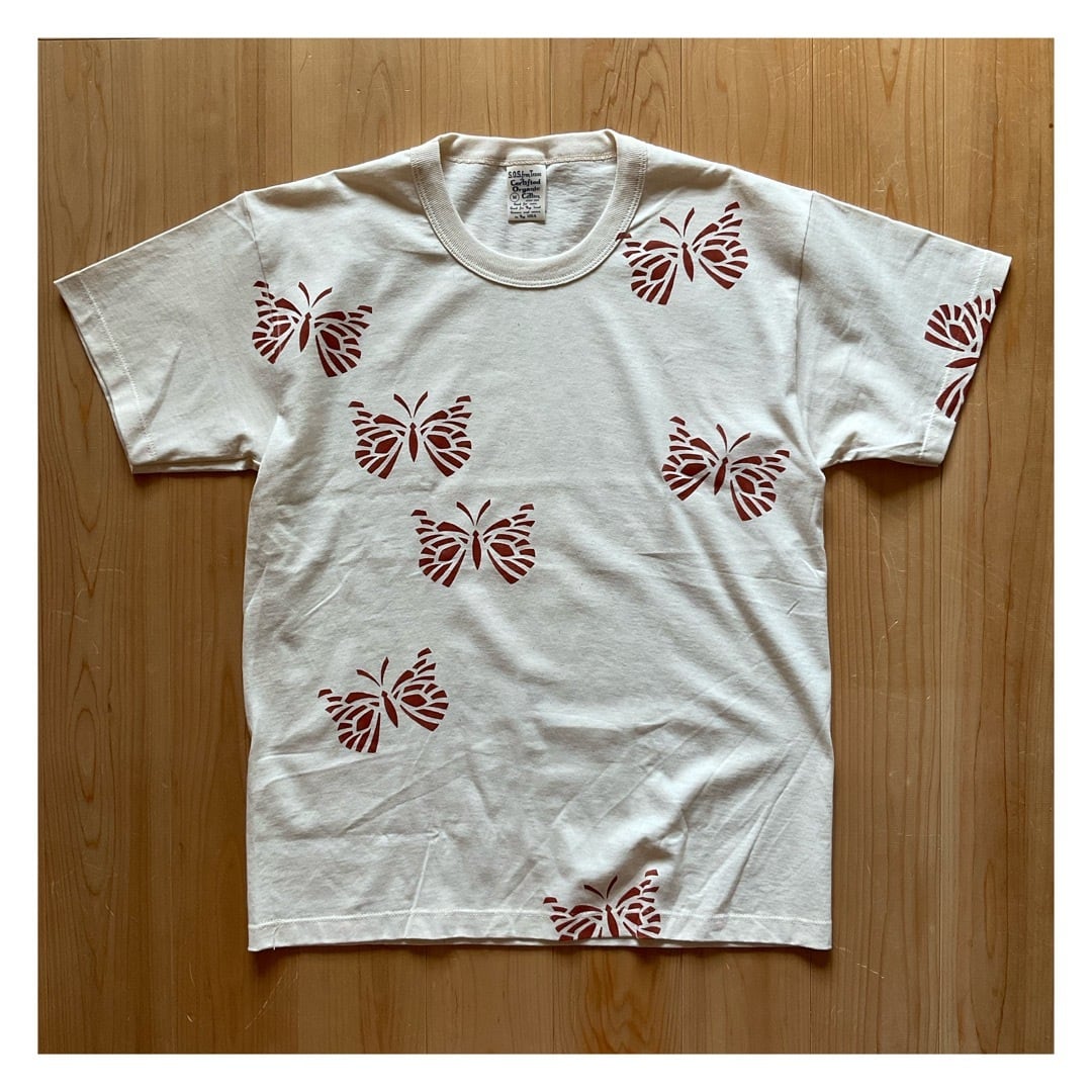 CONTINUUMのプリントは、ペイント柄の型紙からハンドメイドで制作し、じっくり時間をかけて一点一点丁寧に塗布。S.O.S.のTシャツに浮かび上がるそのモチーフは、ハンドペイントだからこそ生まれる絶妙なムラ感で塗料まで天然染料を用いることに拘っており、洗うたびに生地に馴染じむヴィンテージなエイジングもお楽しみ頂けます。