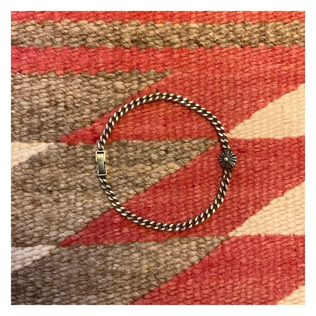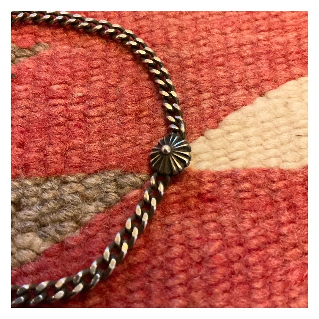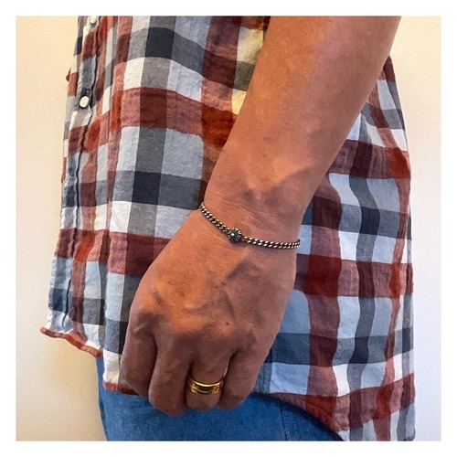 シルバーのキヘイチェーンと、ワンポイントのコンチョモチーフを組み合わせたブレスレット。
