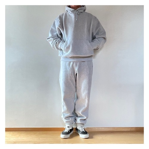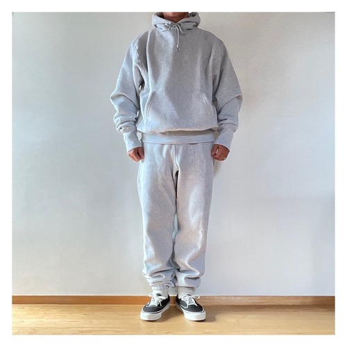 パンツも12.0オンス裏起毛仕様の重厚なスエットパンツ。裏起毛、紐付きゴム入りウエスト、嬉しい深めな両サイドポケット付き。生地の目が横仕様。