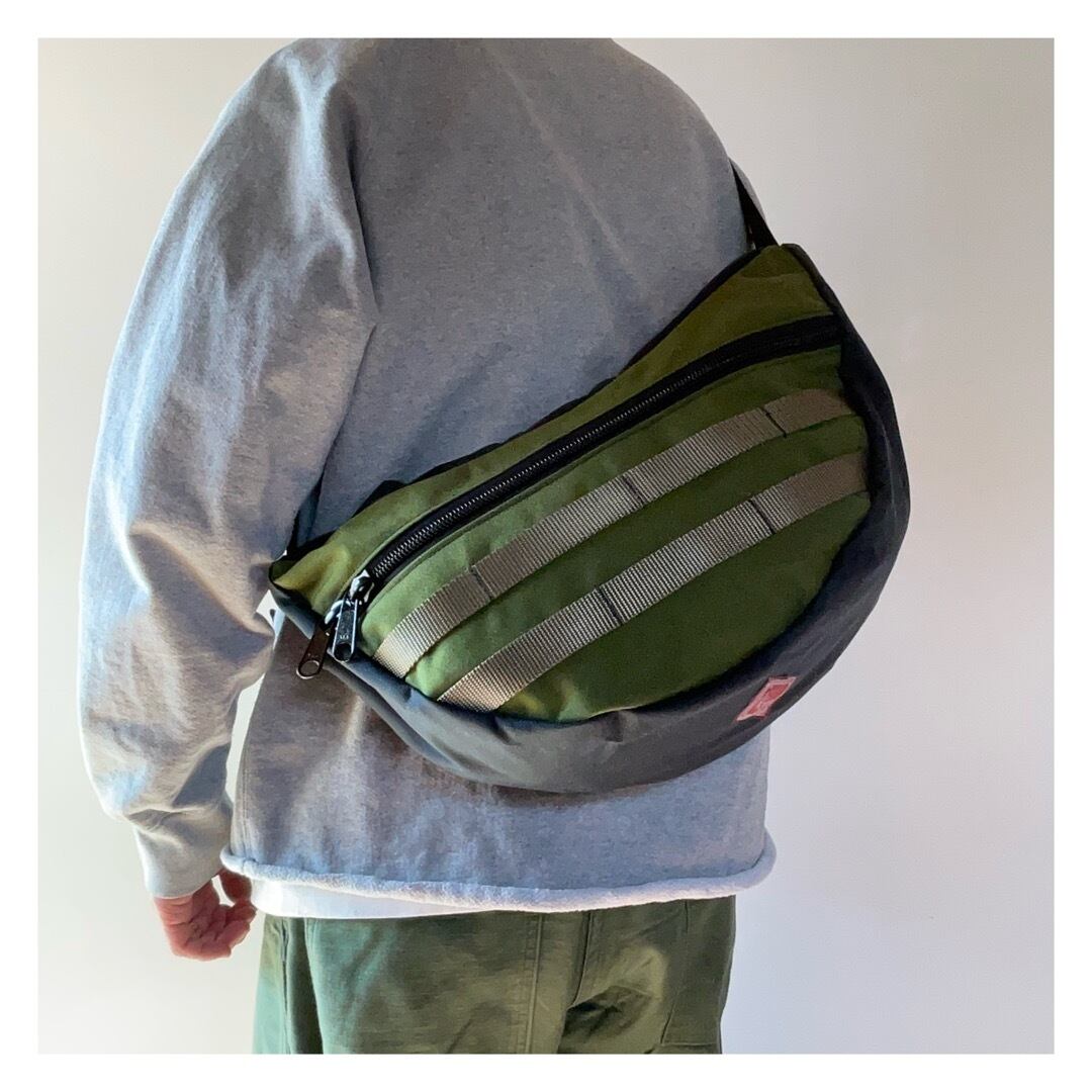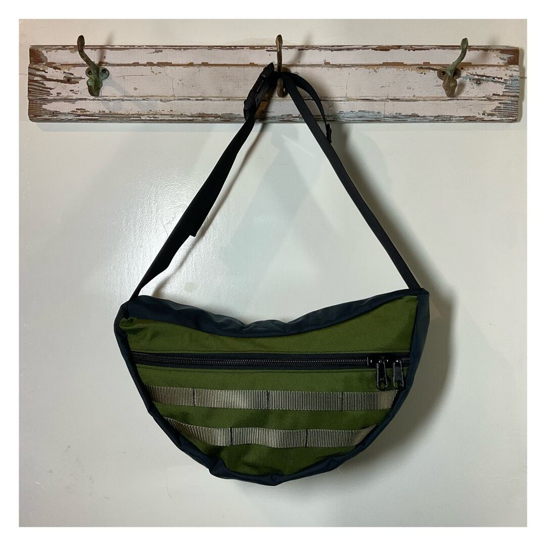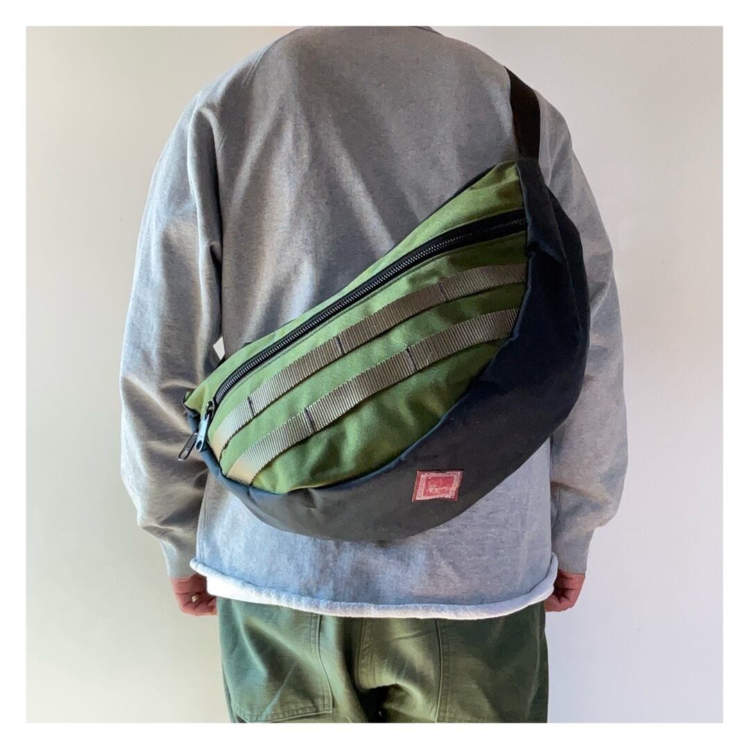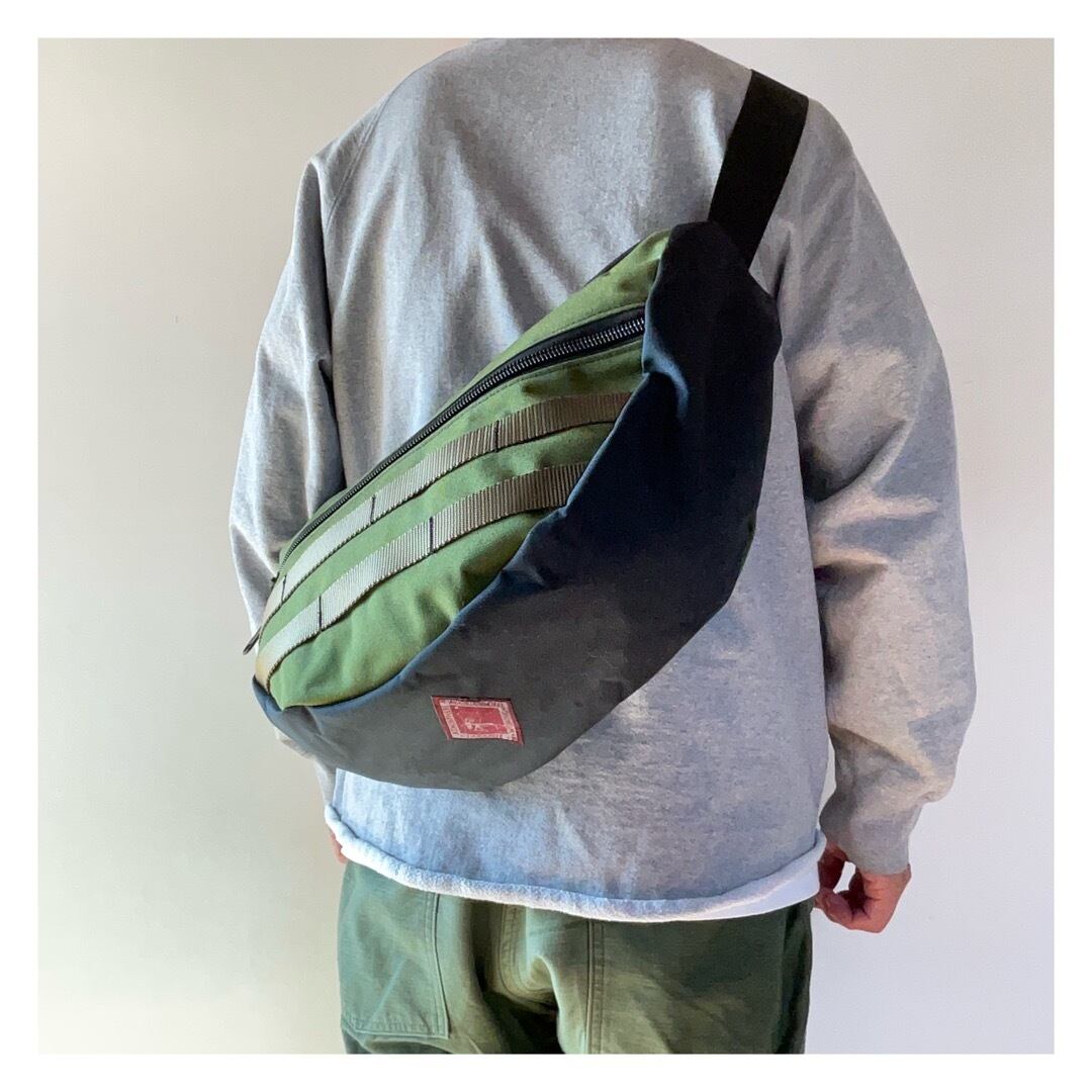 90年代アウトドアを思わせるカラーリングと、体に沿う実用的なショルダーバッグ型。